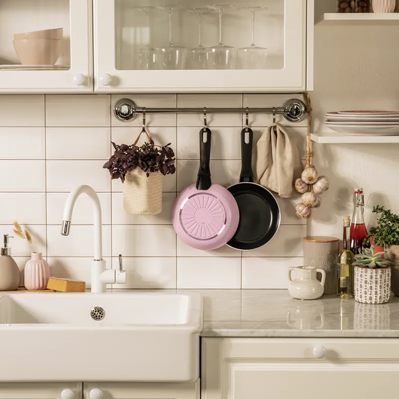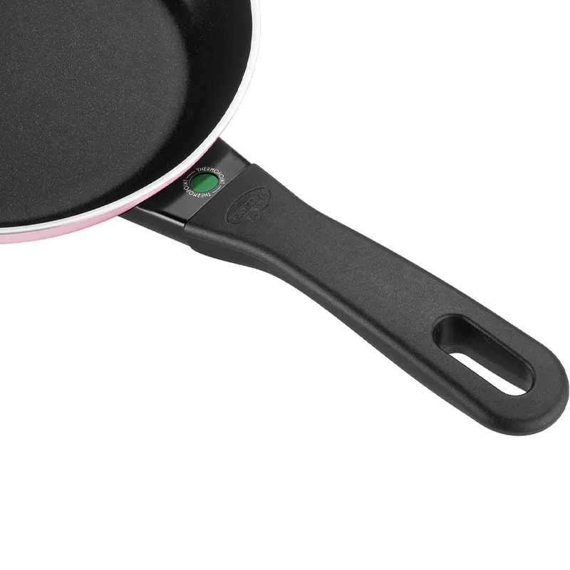 Sartén Ballarini Caprera elaborado en aluminio color rosa; Aporta un toque de encanto italiano a tu cocina con la sartén de la serie caprera de ballarini. Este elegante sartén cautiva con su intenso color rosa, el interior cuenta con un innovador revestimiento antiadherente Kera Gloss de color negro brillante, que permite freír a alta temperatura, garantizando platos deliciosos, dorados y crujientes. La superficie lisa del revestimiento hace que la limpieza sea rápida y sencilla, ahorrándole tiempo y esfuerzo. La tecnología Radiant Induction garantiza que la base de la sartén distribuya el calor de manera rápida y uniforme, el indicador thermopoint en el mango cambia de color según la temperatura, ayudándote a controlar perfectamente el proceso de cocción, es apta para todo tipo de cocinas.
